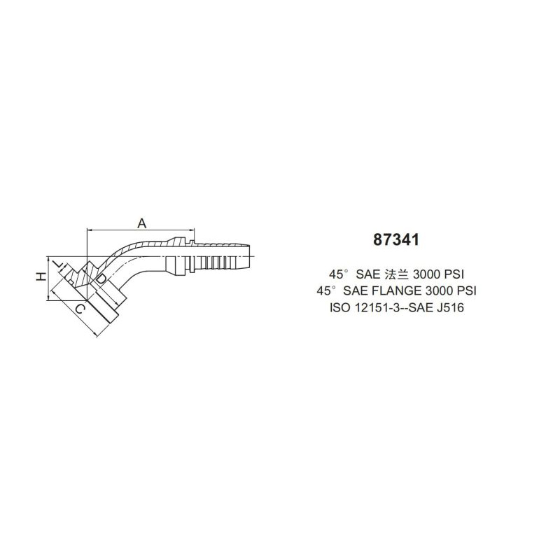永華標準扣壓式接頭87341 45度 SAE 法蘭(flange)3000 psiISO 12151-3-sae j516永華集團創辦于1864年,是以液壓基礎