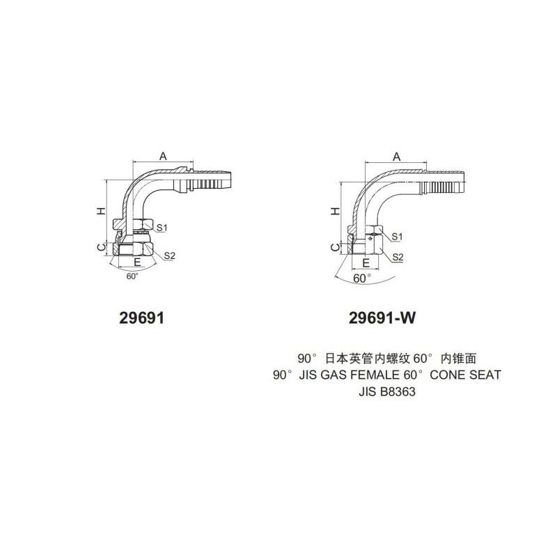 扣壓式接頭29691--29691-W 90度日本英管內(nèi)螺紋60°內(nèi)錐面 90° JIS GAS FEMALE 60° CONE SEAT JIS B8363