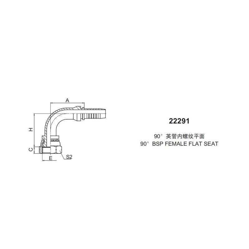 永華標準扣壓式接頭 2229190英管內螺紋 平面密封面90 BSP FEMALE FLAT SEAT永華集團創辦于1864年,主導產品包括軟管總成、軟管接頭、