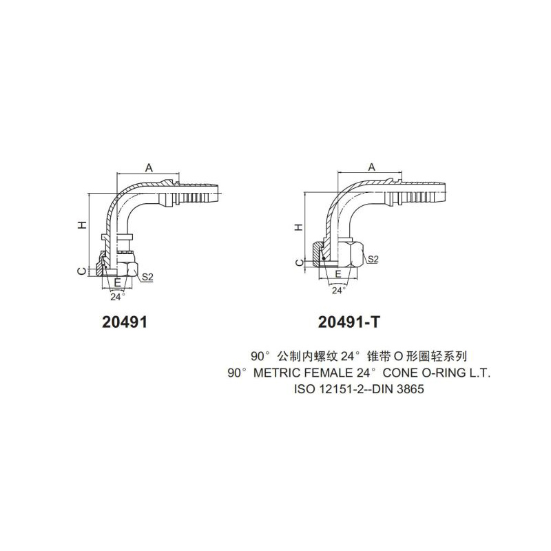 永華標準扣壓式接頭 20491和20491-T 90公制內(nèi)螺紋 24 錐帶O形圈輕系列90 METRIC FEMALE 24 CONE O-RING L.T.