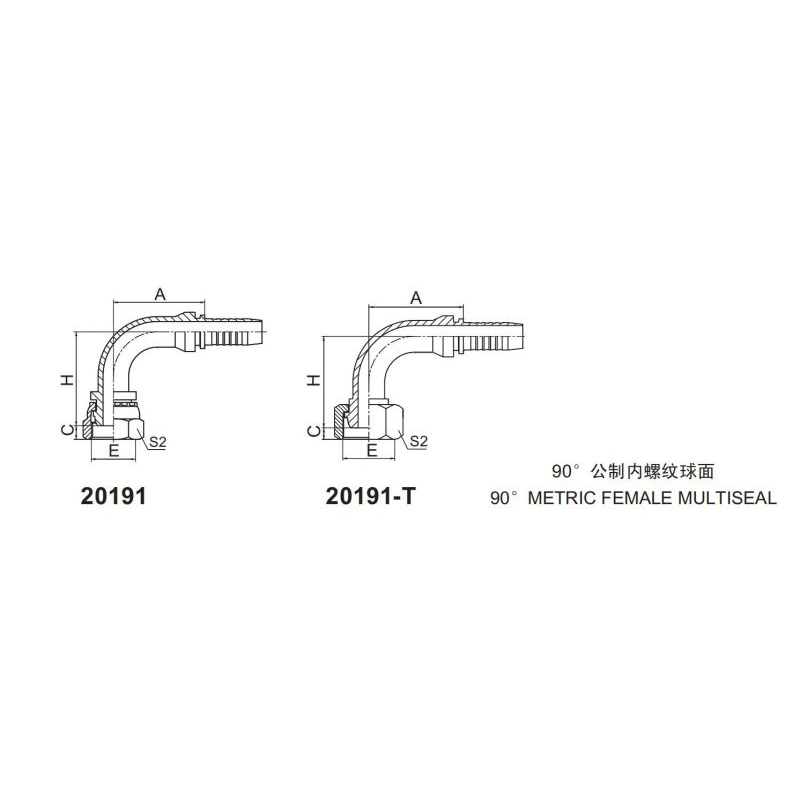 永華標(biāo)準(zhǔn)扣壓式接頭 20191和20191-T 90公制內(nèi)螺紋 球面密封面90 METRIC FEMALE MULTISEAL該接頭常用材質(zhì)有碳鋼彩、碳鋼鍍白鋅