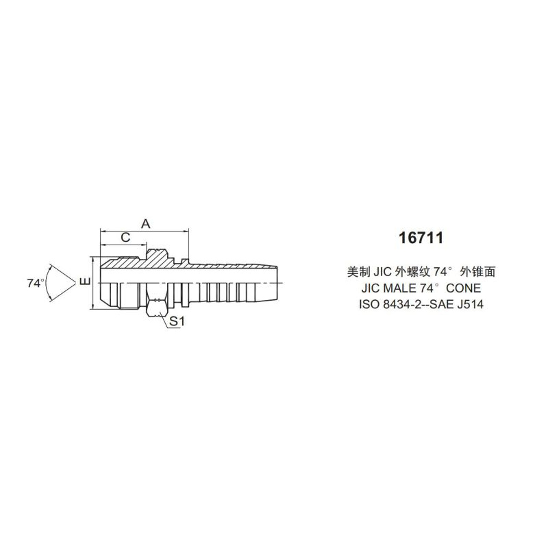扣壓式接頭 16711 美制JIC 外螺紋 74° 外錐面密封面